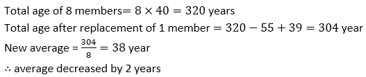 Q9. एक 8 सदस्यों के समूह की औसत आयु 40 वर्ष है. 1 सदस्य की आयु 55 वर्ष है. उसकी सेवानवृति के बाद एक नया सदस्य उसके स्थान पर आता है जिसकी आयु 39 वर्ष है. समूह की आयु में कितने से गिरावट आएगी?