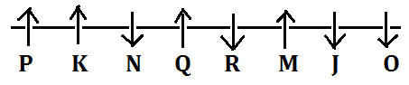 M, N, O, P, Q, R, J और K एक सीधी रेखा में बैठे हैं लेकिन आवश्यक नहीं कि समान क्रम में हों। उनमें से कुछ दक्षिण की ओर उन्मुख हैं जबकि कुछ उत्तर की ओर उन्मुख हैं। केवल दो व्यक्ति M के दायें ओर बैठे हैं। N, M के बायें से तीसरे स्थान पर बैठा है। N और R के बीच केवल एक व्यक्ति बैठा है। R, Q के ठीक दायें ओर बैठा है। Q और K के बीच केवल एक व्यक्ति बैठा है। N के दोनों निकटतम पड़ोसी समान दिशा में उन्मुख है। M उत्तर की ओर उन्मुख है। O, R के बायें से तीसरे स्थान पर बैठा है। N, M की विपरीत दिशा की ओर उन्मुख है। J, पंक्ति के किसी भी अंतिम छोर पर नहीं बैठा है। P, Q के समान दिशा की ओर उन्मुख है। J और O दोनों, K के विपरीत दिशा की ओर उन्मुख हैं।