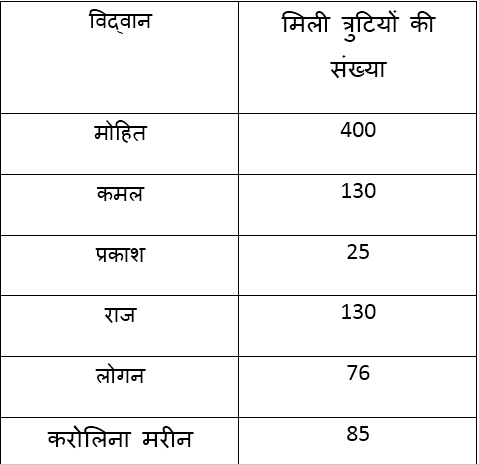 Q9. मोहित और कमल द्वारा खोजी गयी त्रुटियों के औसत संख्या का उन सभी द्वारा खोजी गयी त्रुटियों की औसत संख्या से अनुपात कितना है?