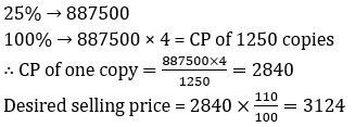 Q14. 1250 प्रतियों के एक संस्करण के लिए, बाइंडिंग लागत 887500 रु. है, यदि प्रकाशक 10% लाभ प्राप्त करना चाहता है, तो एक पुस्तक का विक्रय मूल्य कितना होगा?