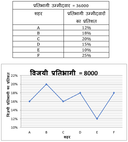 Q17. शहर ‘E’ के कितने प्रतिशत प्रतिभागियों को इस शहर से भाग लेने वाले कुल उम्मीदवारों में से विजेता घोषित कर दिया है?