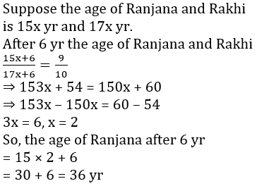 Q11. रंजना और राखी की आयु का क्रमशः अनुपात 15: 17 है. 6 वर्ष बाद उनकी आयु का अनुपात 9: 10 होगा. 6 वर्ष बाद रंजना की आयु कितनी होगी?