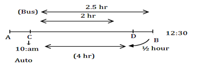 Distance C D covered by Bus in 2 hour and auto covered the same distance in 4 hr.