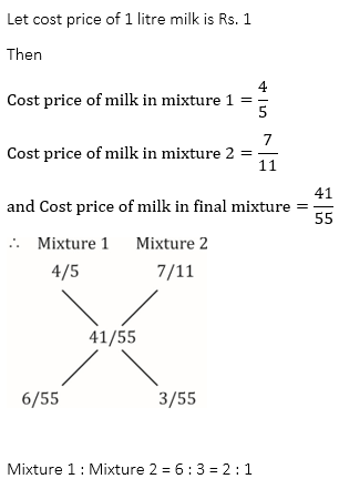 Q11. एक बर्तन में, दूध और पानी का अनुपात 4: 1 है. एक अन्य बर्तन में, दूध और पानी का अनुपात 7: 4 है. एक नया मिश्रण बनाने के लिए जिसमें दूध और पानी का अनुपात 41:14 हो, इस दोनों मिश्रण को किस अनुपात में मिलाना जाना चाहिए?