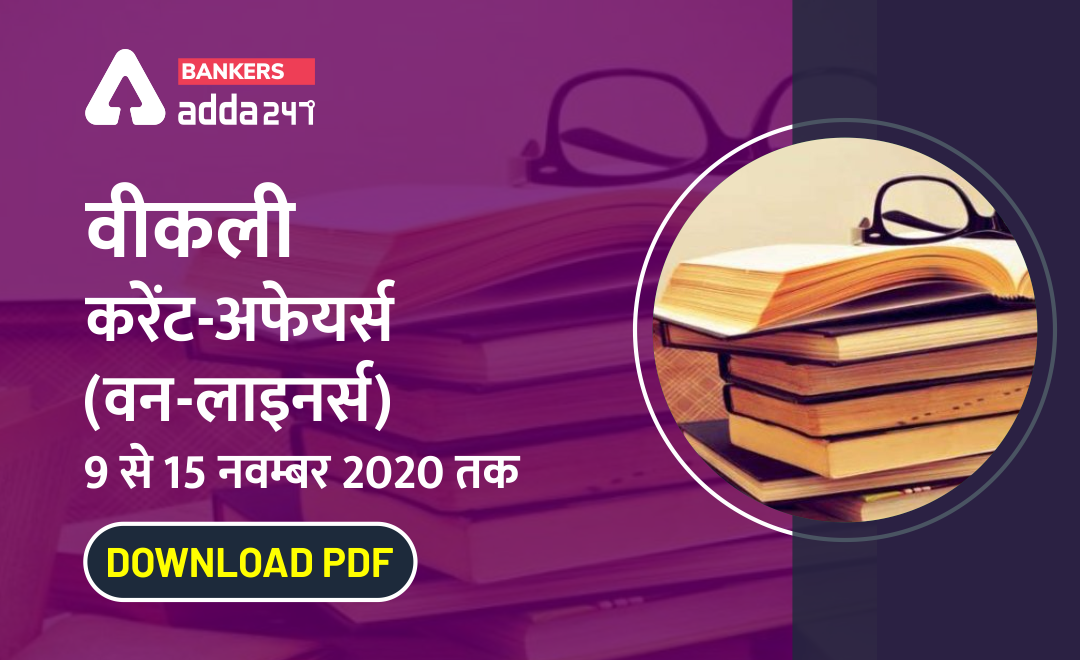वीकली करेंट अफेयर्स वन-लाइनर्स 09 नवम्बर से 15 नवम्बर 2020 तक | Download PDF