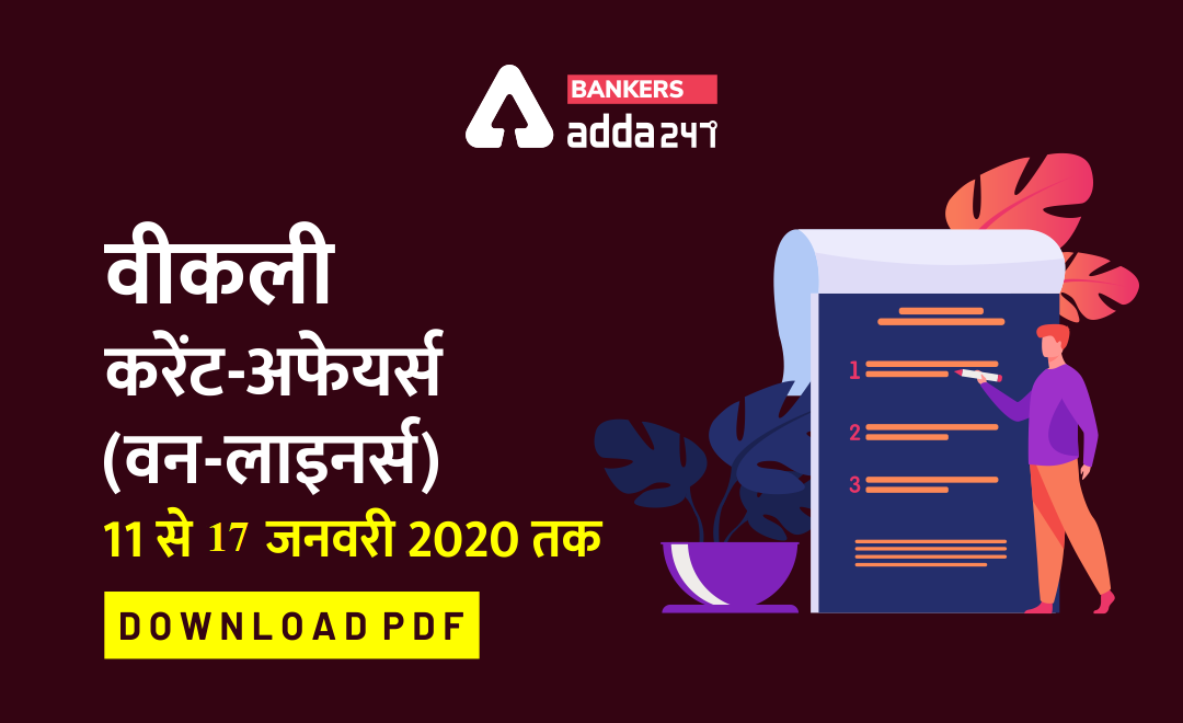 अब हम आपकी तैयारी को आसान बनाने के लिए 11 जनवरी से 17 जनवरी 2021 तक के Important Events की PDF प्रदान कर रहे हैं, जिसमें पूरे सप्ताह के करंट अफेयर्स दिए जा रहे हैं. करेंट अफेयर्स SBI, IBPS, RRB , SSC, Railways, SEBI Grade-A और अन्य बैंकिंग या इंश्योरेंस परीक्षाओं में General Awareness या सामान्य जागरूकता में बेहतर Marks लाने में बहुत महत्वपूर्ण भूमिका निभाते हैं.