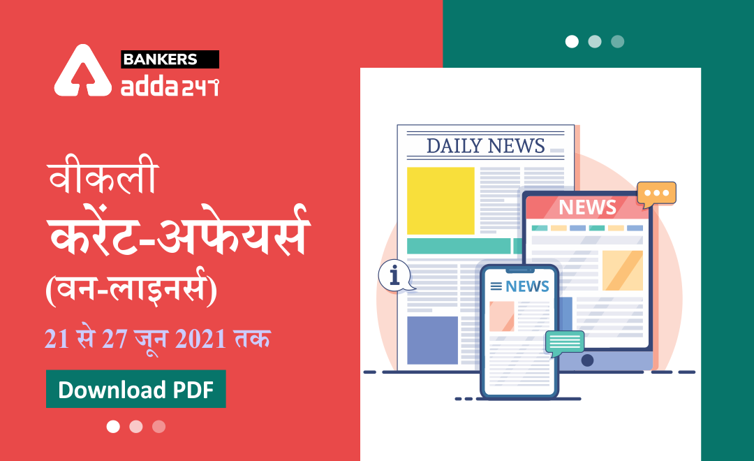 डाउनलोड PDF: वीकली करेंट अफेयर्स वन-लाइनर्स 21 से 27 जून 2021 तक
