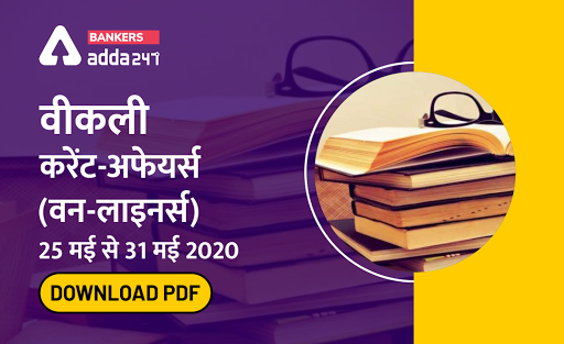 Adda247 आपको डेली बेसिस पर करेंट अफेयर क्विज़ प्रदान करता है. आज हम आपकी तैयारी को आसान बनाने के लिए 25 मई से 31 मई , 2020 तक के Important Events की PDF प्रदान कर रहे हैं, जिसमें पूरे सप्ताह के करंट अफेयर्स दिए जा रहे हैं. करेंट अफेयर्स SBI, IBPS, SSC, Railways, SEBI Grade-A और अन्य बैंकिंग या इंश्योरेंस परीक्षाओं में General Awareness या सामान्य जागरूकता में बेहतर Marks लाने में बहुत महत्वपूर्ण भूमिका निभाते हैं.