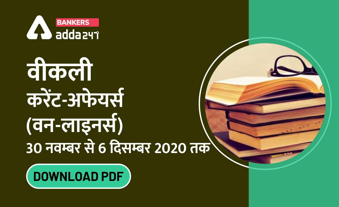 30 नवम्बर से 06 दिसम्बर 2020 तक में शामिल पिछले सप्ताह की कुछ सबसे महत्वपूर्ण समचारों (most important news) की सूची दी गई है :
