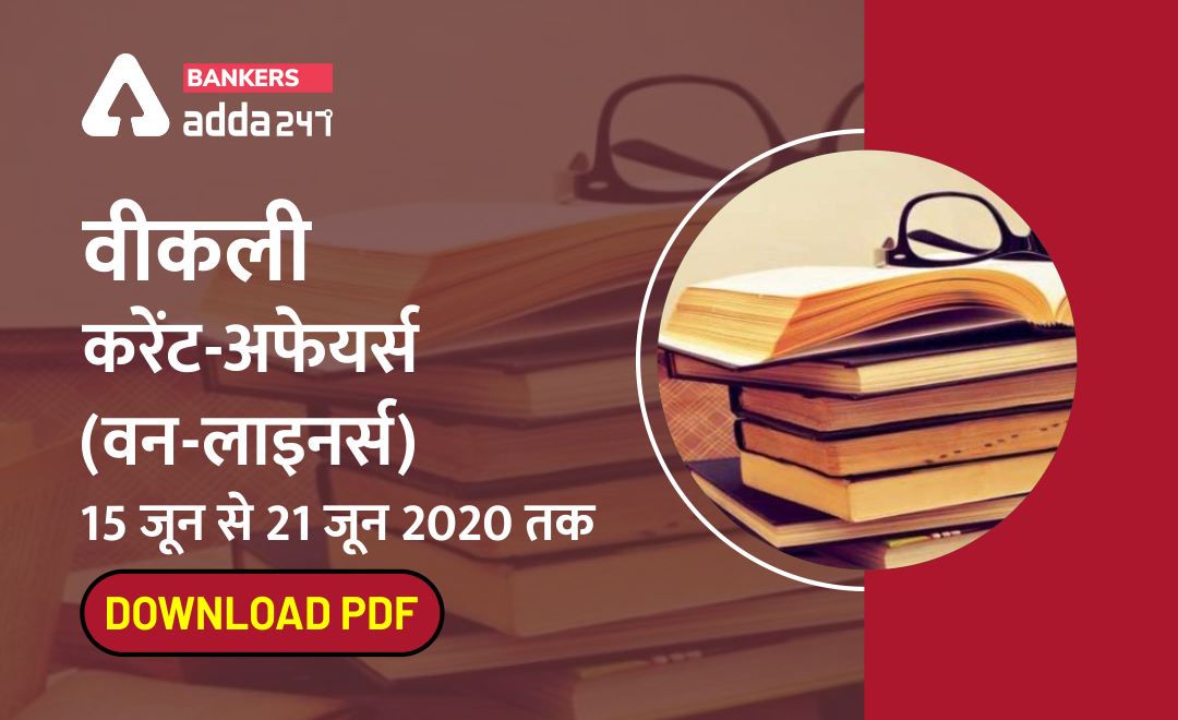 वीकली करेंट अफेयर्स वन-लाइनर्स 15 जून से 21 जून 2020 तक | Download PDF