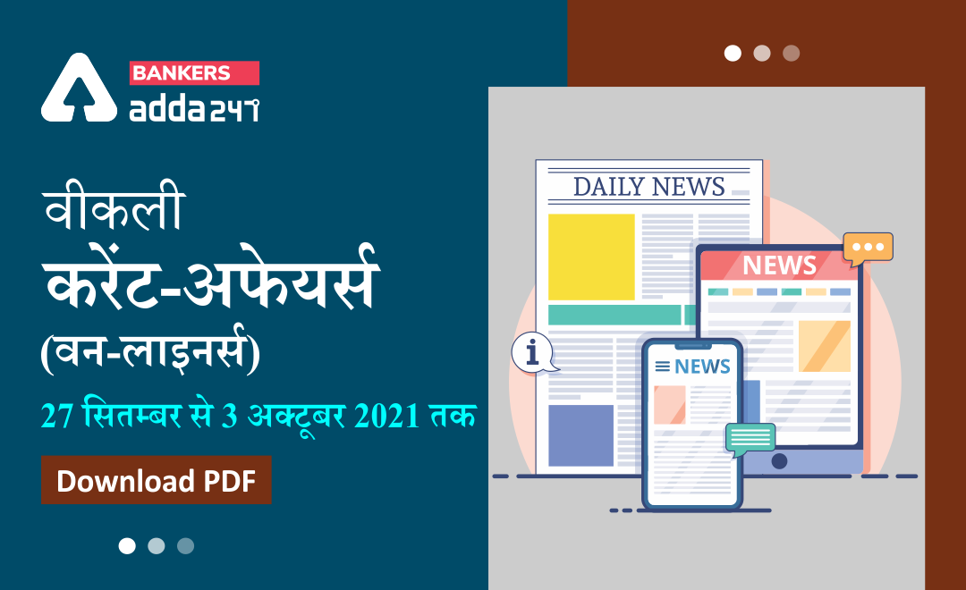 Download करें वीकली करेंट अफेयर्स वन-लाइनर्स 27 सितंबर से 3 अक्टूबर 2021 तक