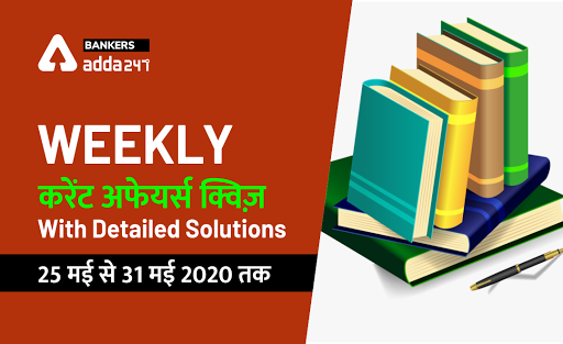 प्रतियोगी परीक्षाओं की तैयारी कर रहे अपने स्टूडेंट्स और रीडर्स के लिए Hindi bankersadda, Weekly Current Affairs Quiz with Detailed Solutions (25 मई से 31 मई 2020 तक) लेकर आया है, इस क्विज़ में प्रश्नों के बाद आपको हिंदी में विस्तृत उत्तर भी दिए गये हैं.
